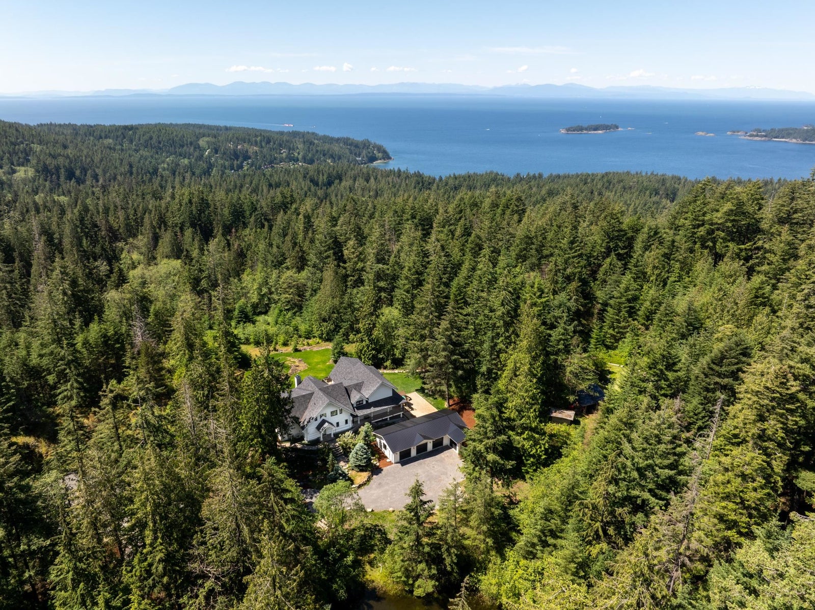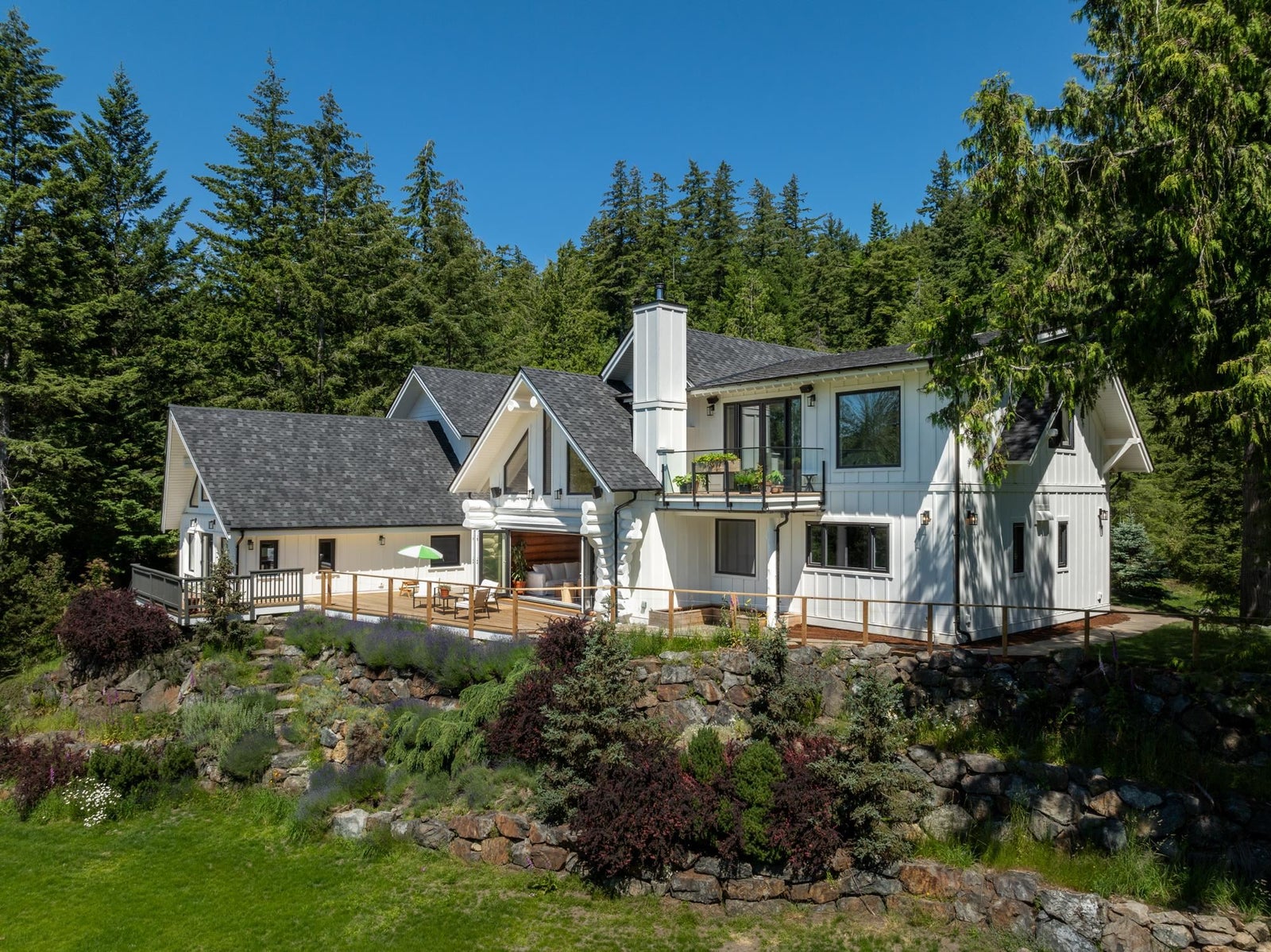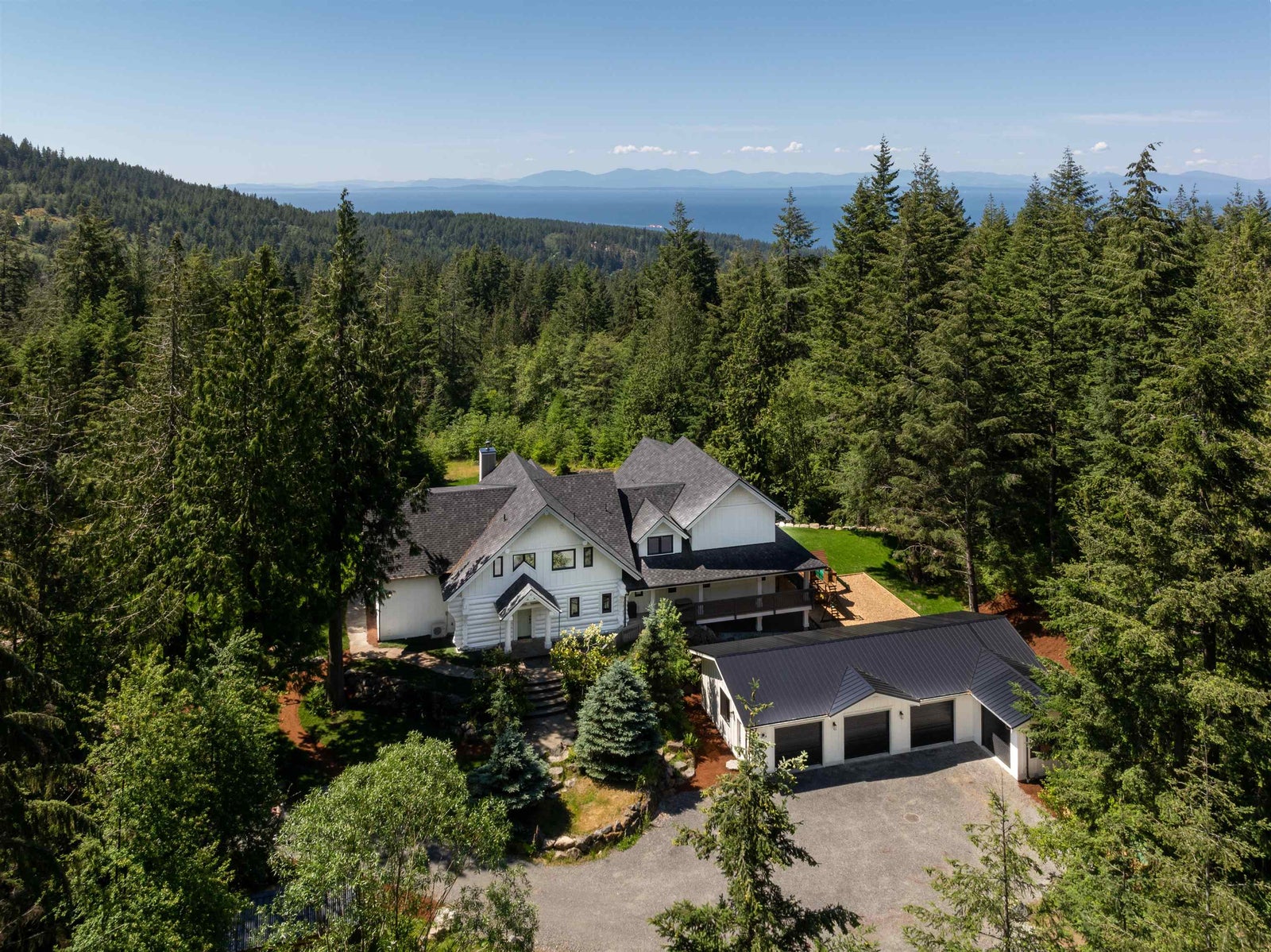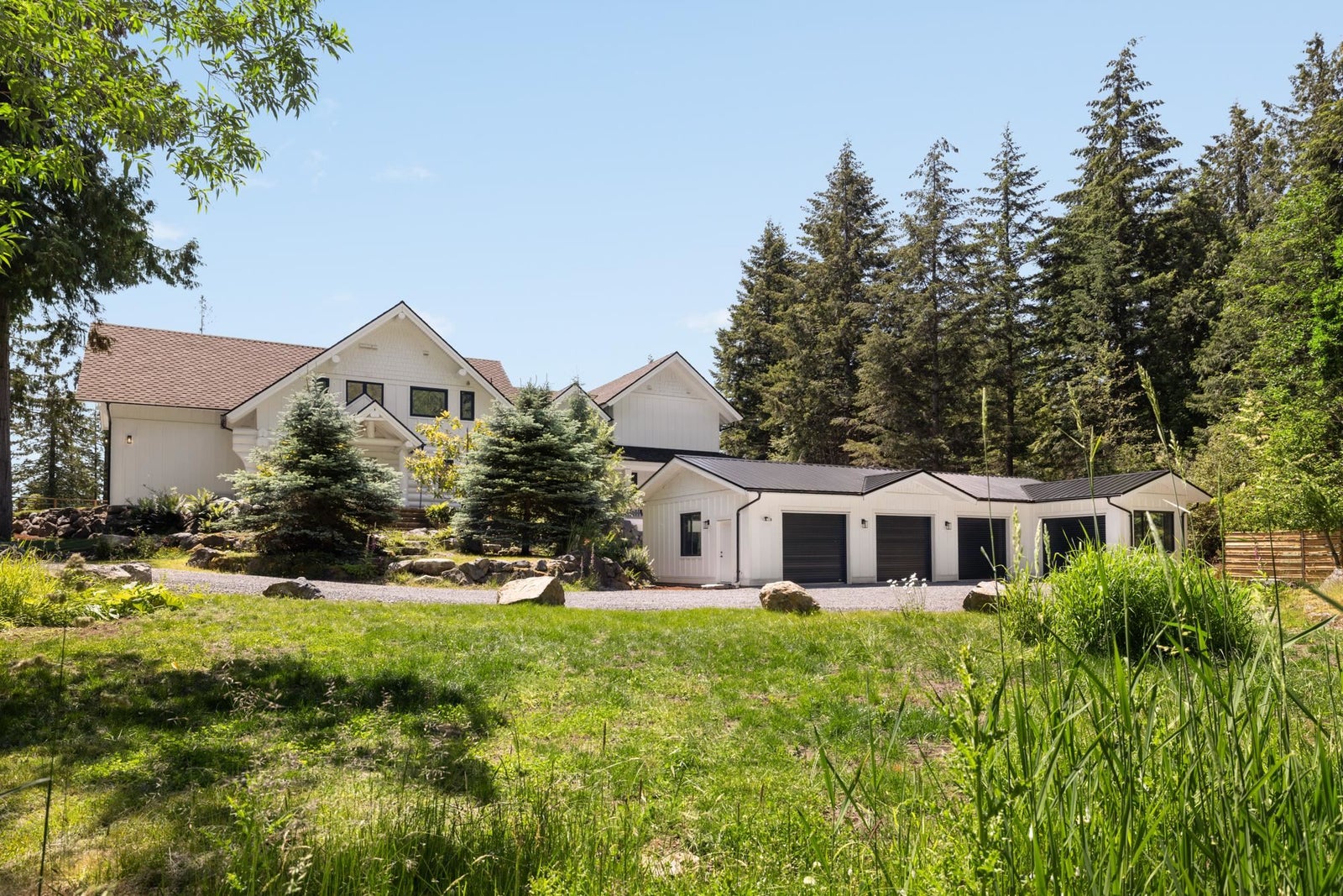 Exceptional country estate sprawling nearly 10 acres and featuring southwesterly ocean, island & mountain range views. A contemporary renovation, including additions, has completely transformed this home. Expansive open concept main level, kitchen, eating, dining & living space that flows out towards a wrap around sundeck with stunning views. Children's play space, both indoors and out, will keep all engaged. The primary suite affords ample space for a lounging area, plus a balcony for sunset views. Flexible use of rooms on both levels creates live/work options. Explore your passion in horticulture or agriculture with land to spare. Explore the equestrian paths and Mt. Gardner trailhead in the periphery. Westside beaches a short distance. Ultimate privacy within easy reach to Vancouver.