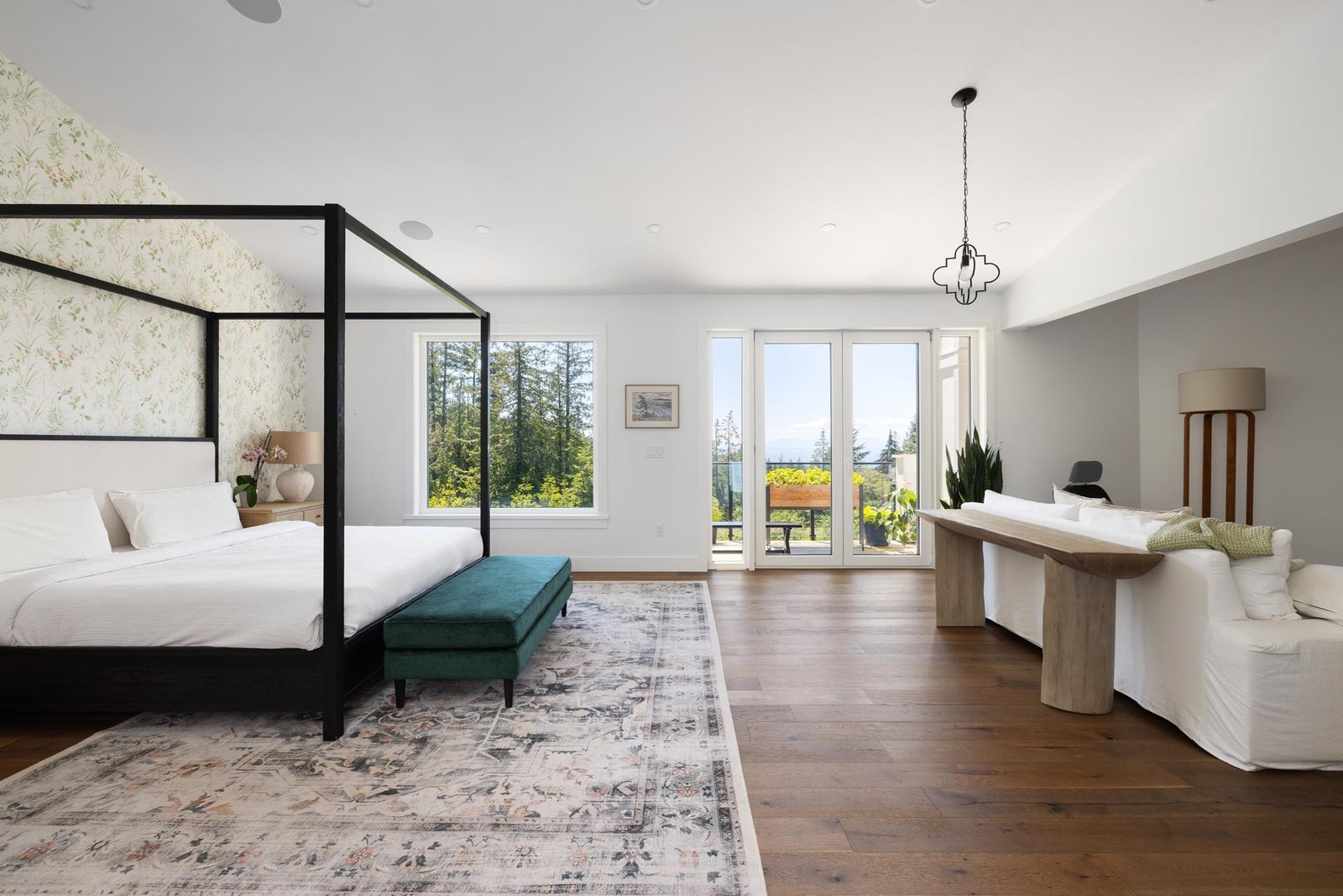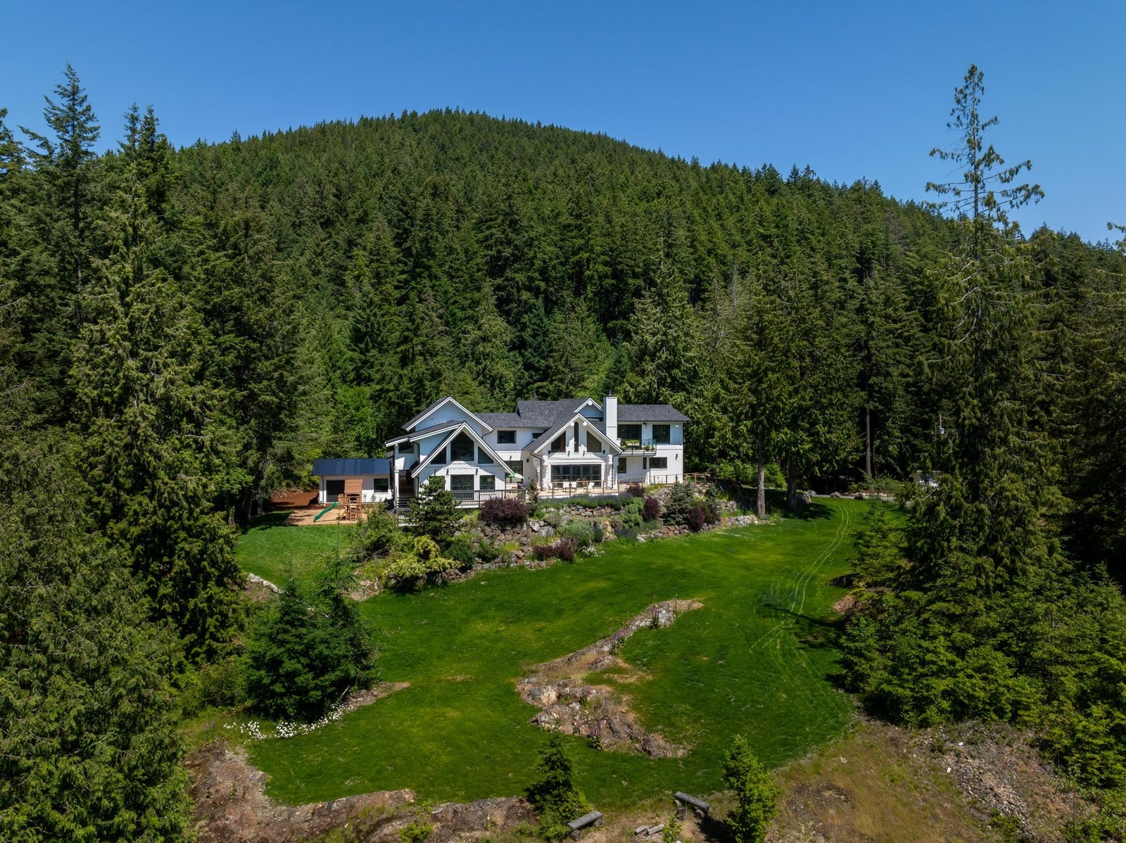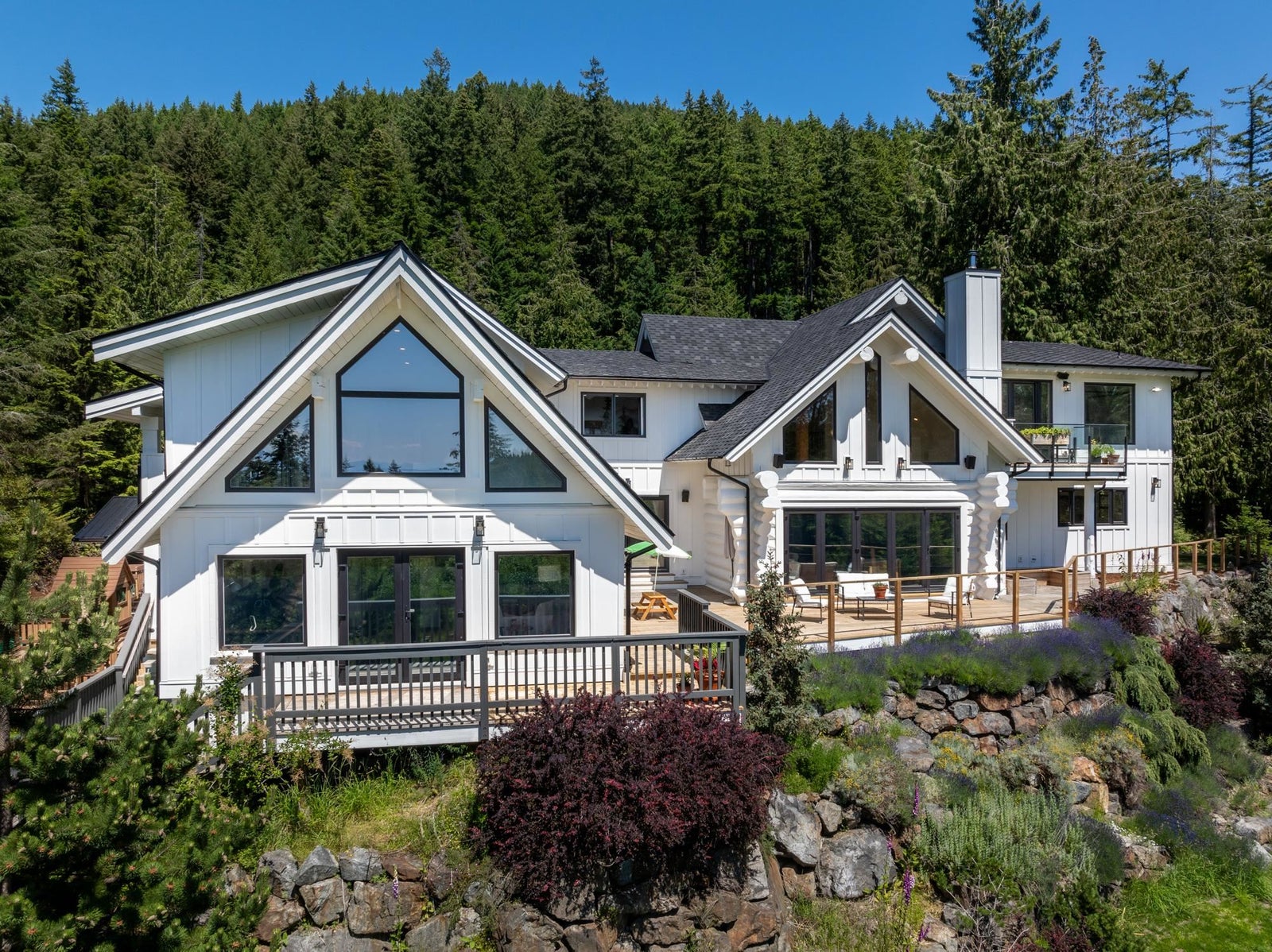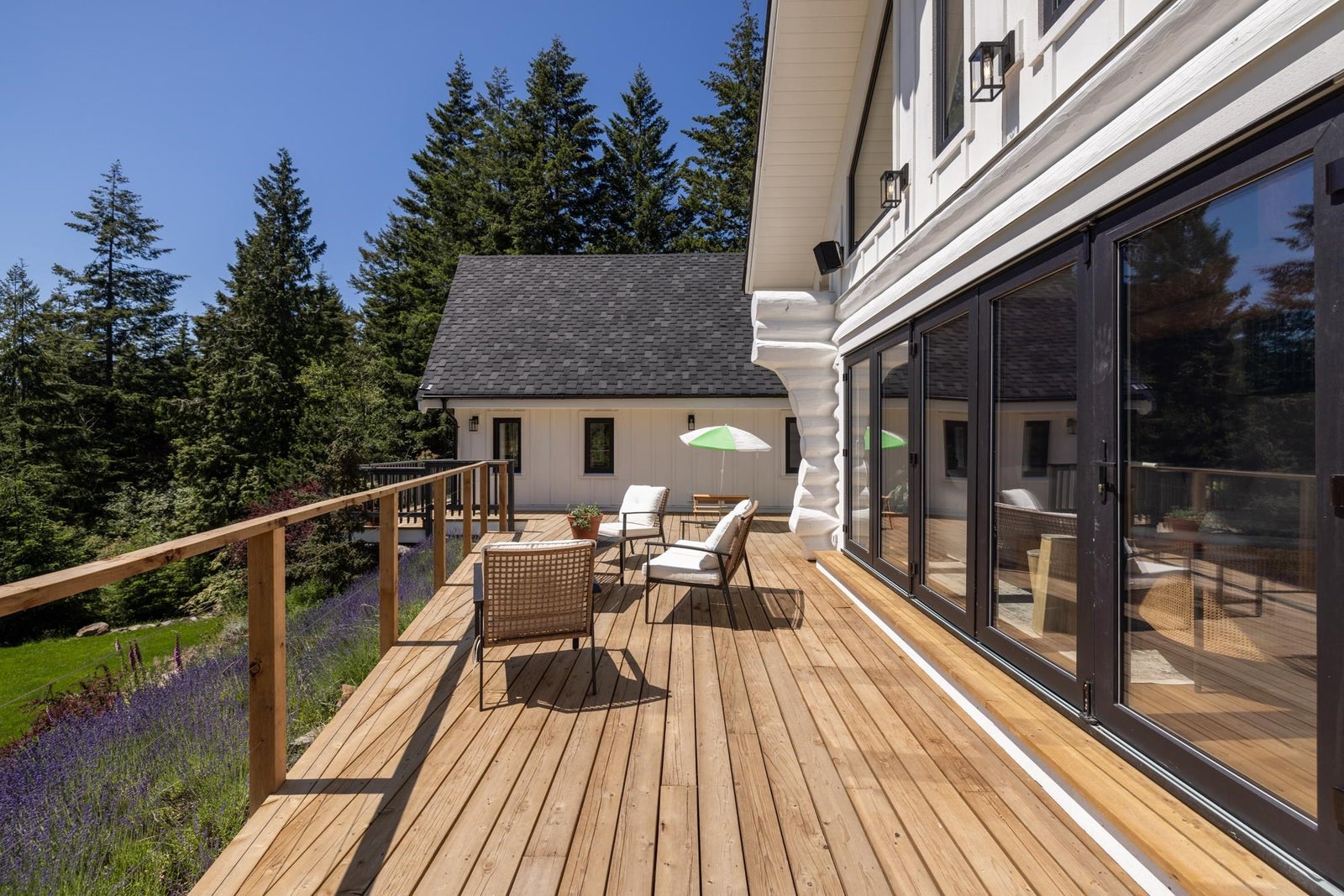 Exceptional country estate sprawling nearly 10 acres and featuring southwesterly ocean, island & mountain range views. A contemporary renovation, including additions, has completely transformed this home. Expansive open concept main level, kitchen, eating, dining & living space that flows out towards a wrap around sundeck with stunning views. Children's play space, both indoors and out, will keep all engaged. The primary suite affords ample space for a lounging area, plus a balcony for sunset views. Flexible use of rooms on both levels creates live/work options. Explore your passion in horticulture or agriculture with land to spare. Explore the equestrian paths and Mt. Gardner trailhead in the periphery. Westside beaches a short distance. Ultimate privacy within easy reach to Vancouver.